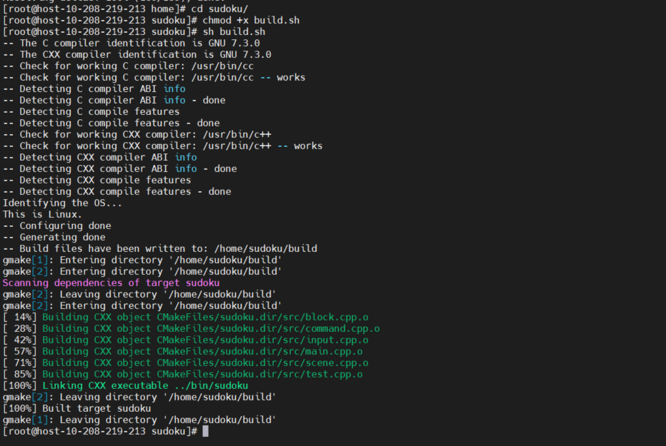 构建步骤生成的 sudoku 可执行文件在 bin 目录下