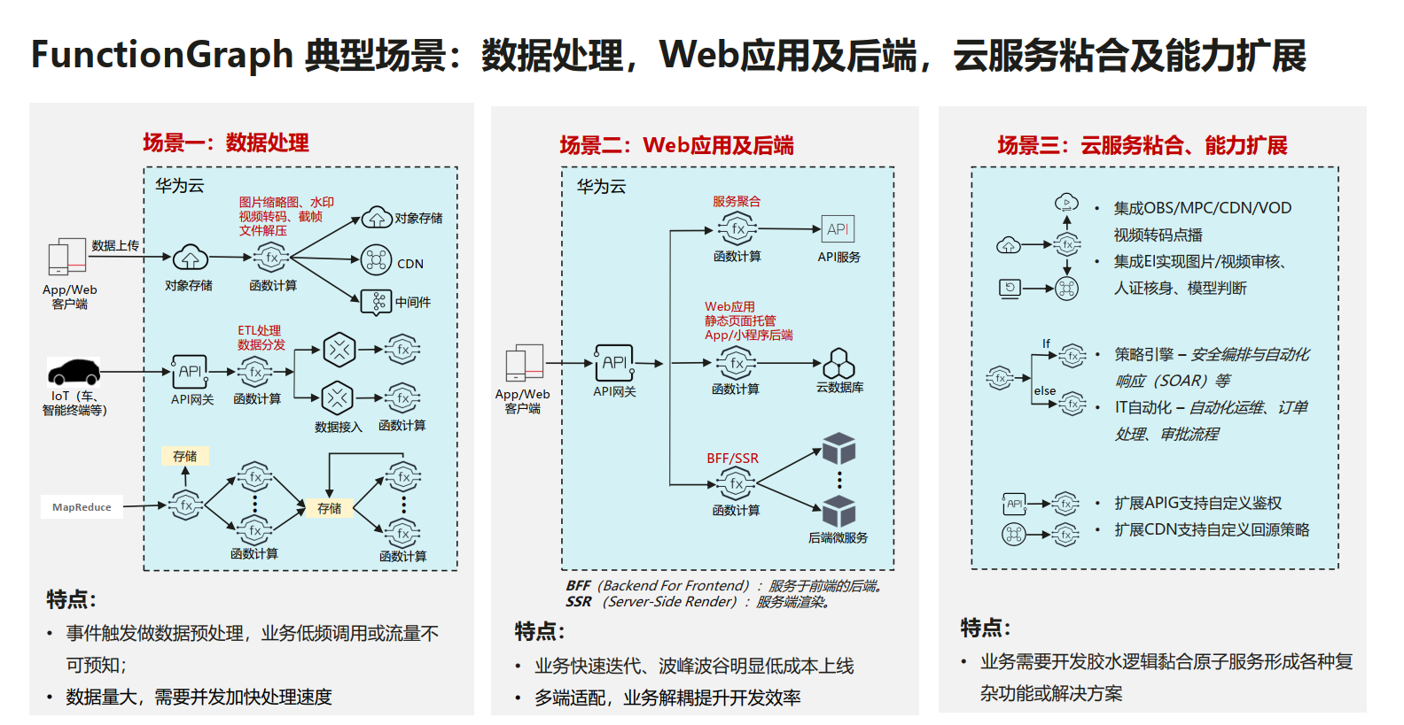 根据实际的业务实践FunctionGraph的适用场景可以分成三类: