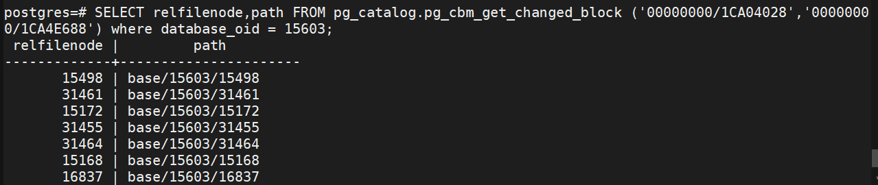 - startlsn为本cbm文件内容对应xlog记录的起始lsn;