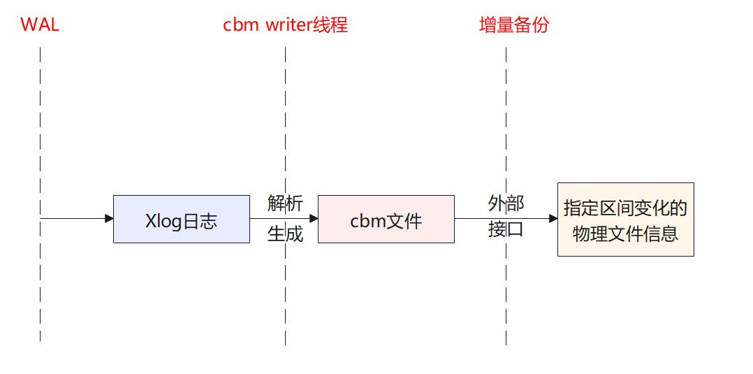 在startup线程刚启动时,其根据已经解析出来的CBM文件,来决定CBM writer开始解析的起始LSN位置。每次执行到checkpoint末尾是,会设置CBM writer线程的latch。CBM writer线程等待latch被设置,然后进行一轮日志解析。 - 通过动态reload GUC参数,开启CBM writer功能