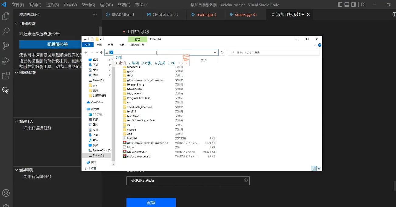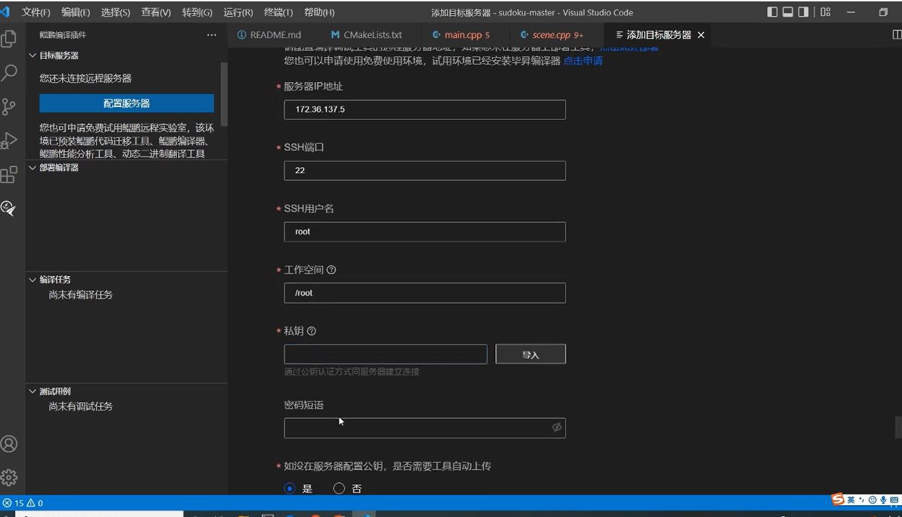 到此我们就 ID 这边也准备好了,然后回到第三点就是我们去远程服务器安装 CMake 3.12 以上的版本。就是大家在申请远程服务器成功的时候,他会给发的邮件里面有我们的区域连接远程服务器需要连接的 VPN 然后才可以去登录上去。这里有一天的话,我这边也下载下来了,通过研究一天。后,我进入到。