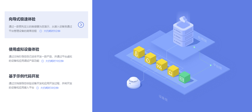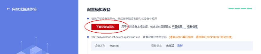 点击 华为云IoT向导式快速体验 下图选择“向导式快速体验”
