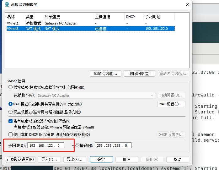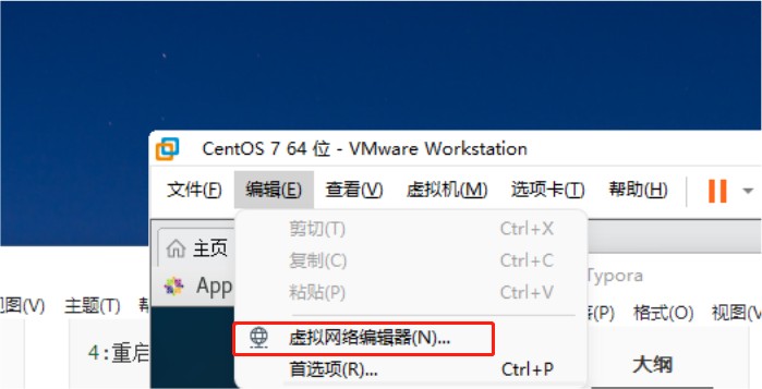 在虚拟机中选择编辑--->虚 拟机网络编辑器