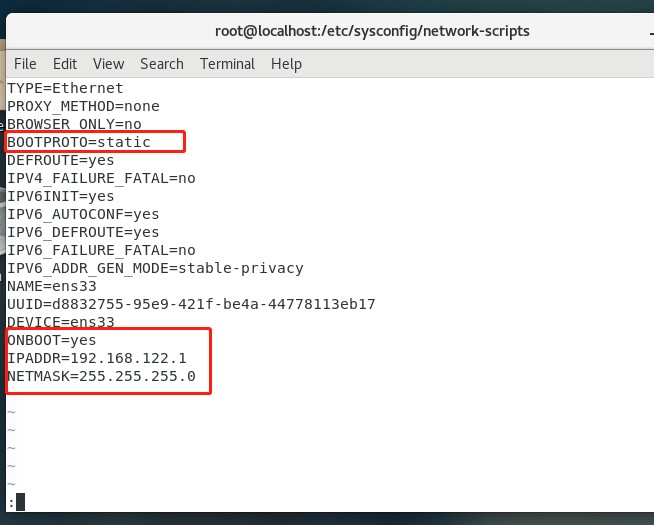 将BOOTPROTO改成static,然后设置静态ip地址和网关