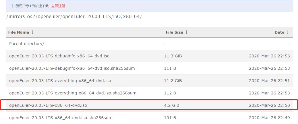 openEuler-22.03-LTS 下载地址 : https://repo.huaweicloud.cn/openeuler/openEuler-20.03-LTS/IS O/x86_64/