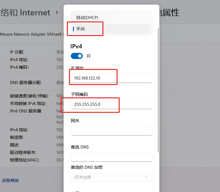 配置虚拟机网段与本地主机在同一网段,方便联通和后续操作