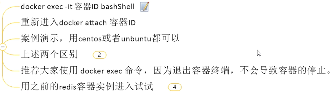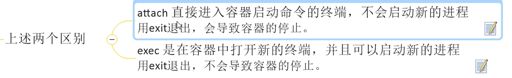 attach直接进入容器启动命令的终端,不会启动新的进程,用exit退出的话,会导致容器的停止。