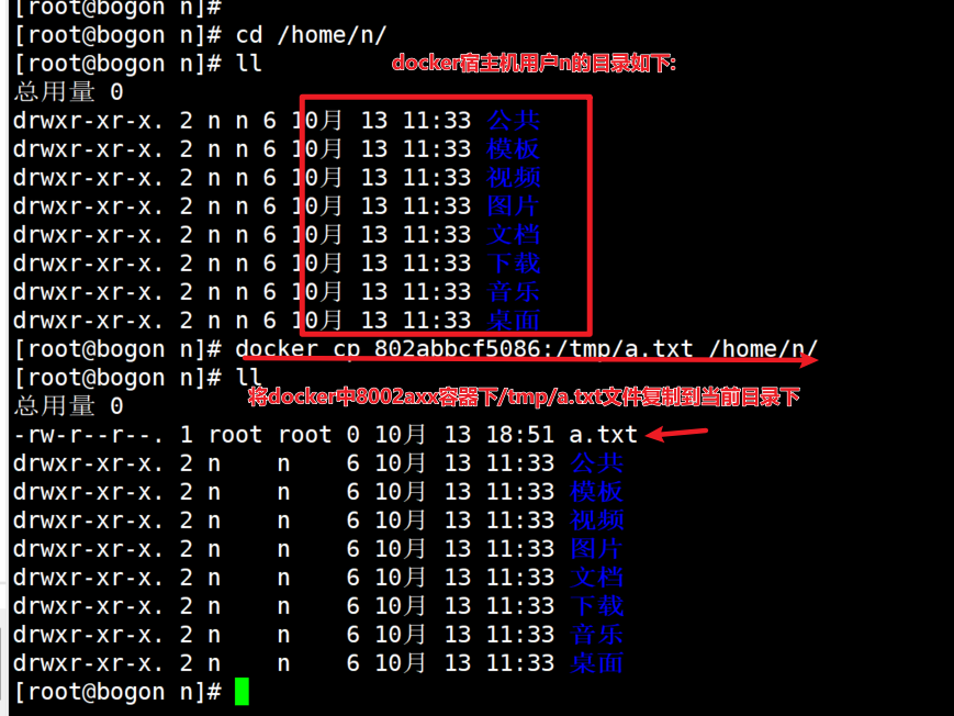 有时候会有这样的场景,我们需要将容器内的文件从容器中复制到宿主机上,这个场景就是从人哪个区到主机的。docker也支持这种场景。使用到的命令公式如下: