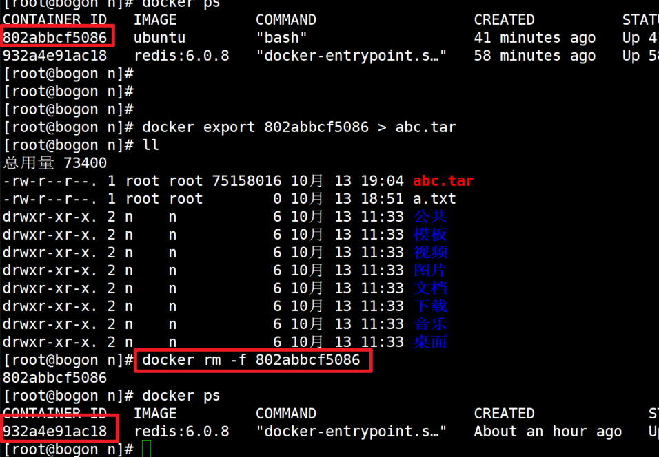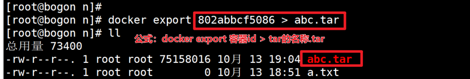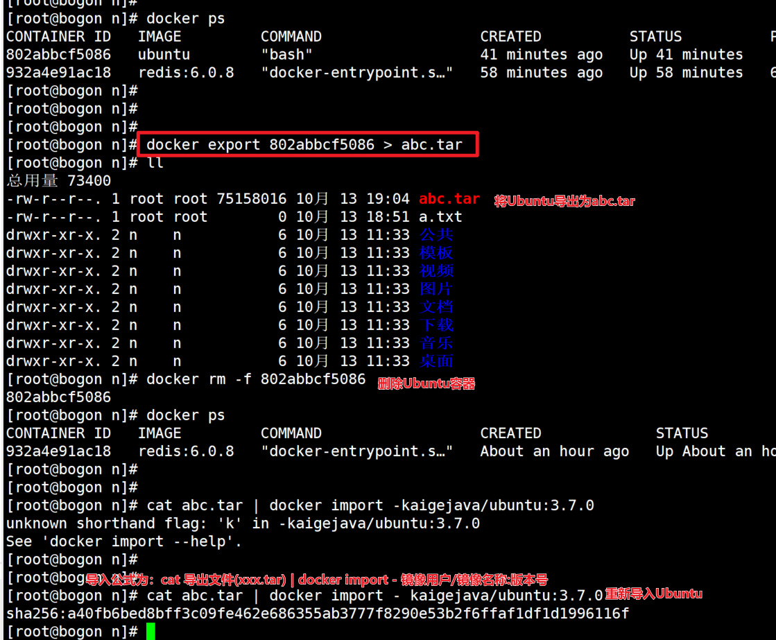 比如我们将上文提到的Ubuntu导出为abc.tar。命令如下: