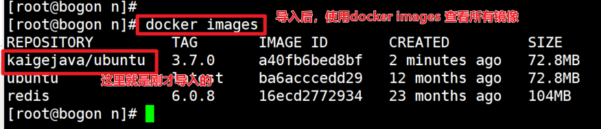 cat 文件名.tar | docker import - 镜像用户/镜像名:镜像版本号