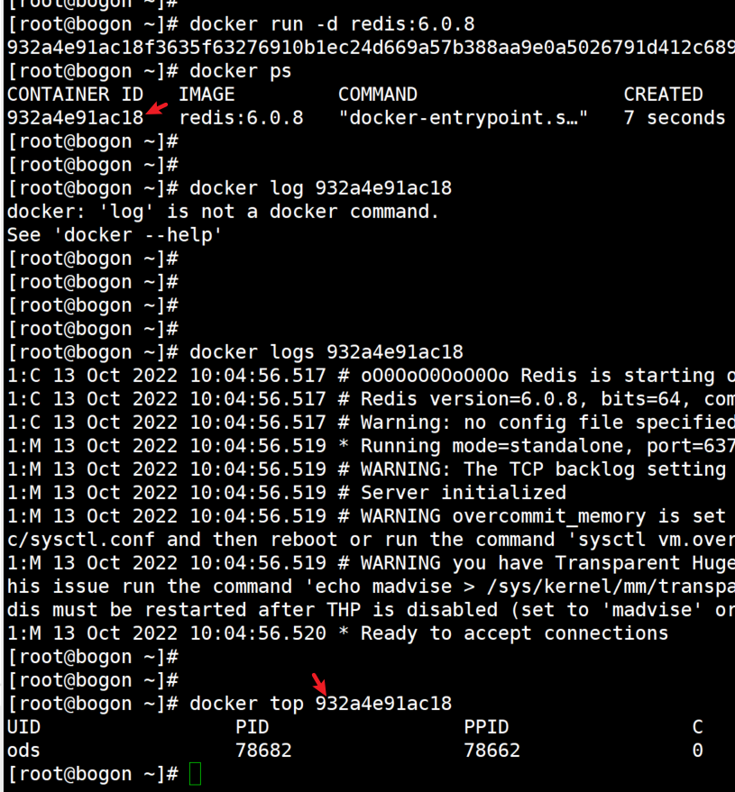比如我们要查看上图中,redis服务器的情况。如果在正常物理机,查看Linux服务情况使用的是top命令。所以在docker中,使用 docker 命令 容器id。如下图: