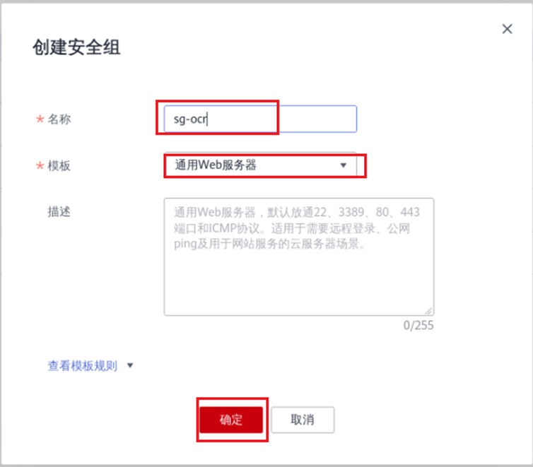 ④ 名称自定义,模板选择“通用web服务器”,点击“确定”: