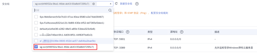 ⑦ 安全组选择上一小节创建的自定义安全组: