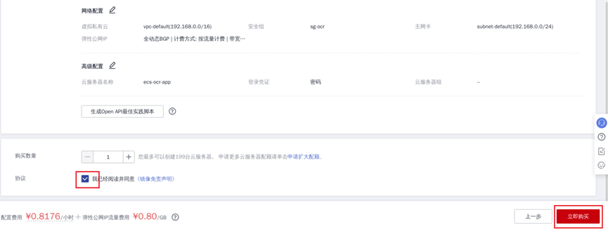 ⑪ 勾选协议,点击“立即购买”: