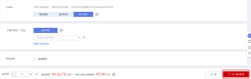 ⑩ 其他保持默认,点击“下一步:确认配置”: