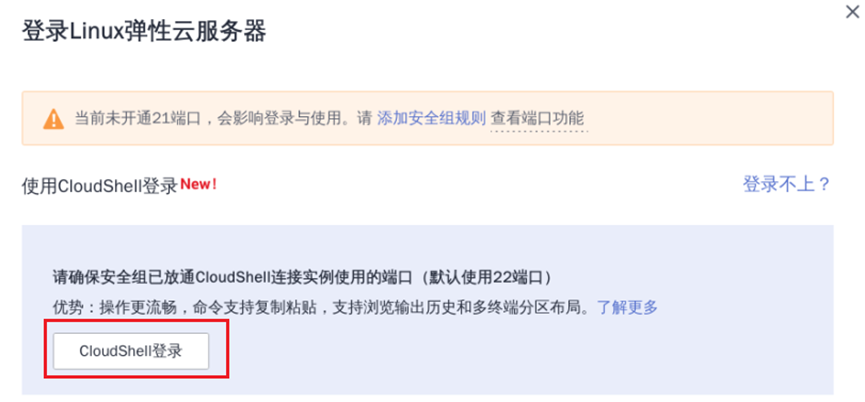 ② 点击“CloudShell”登录