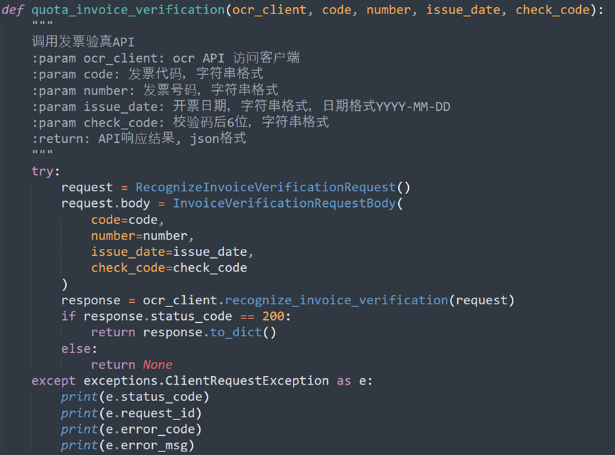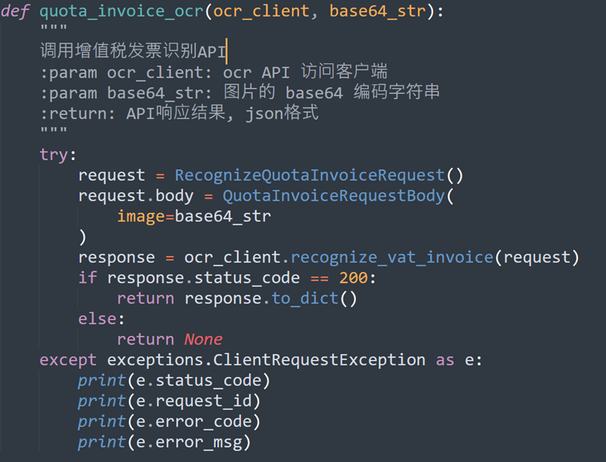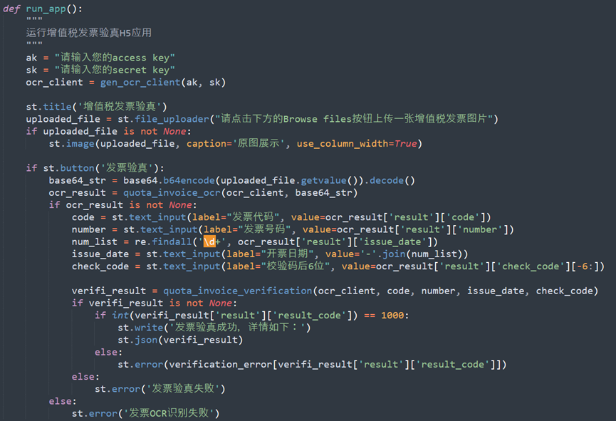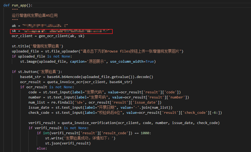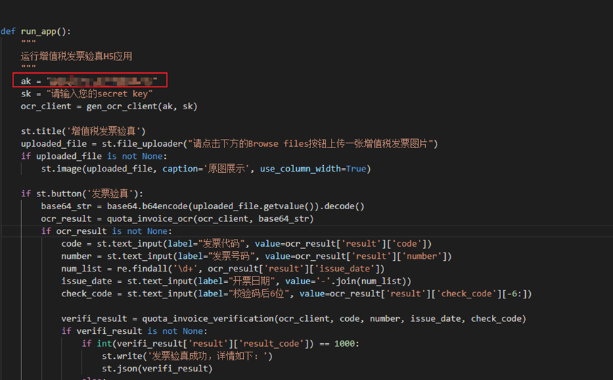 ② 增值税识别函数,调用增值税识别API接口: