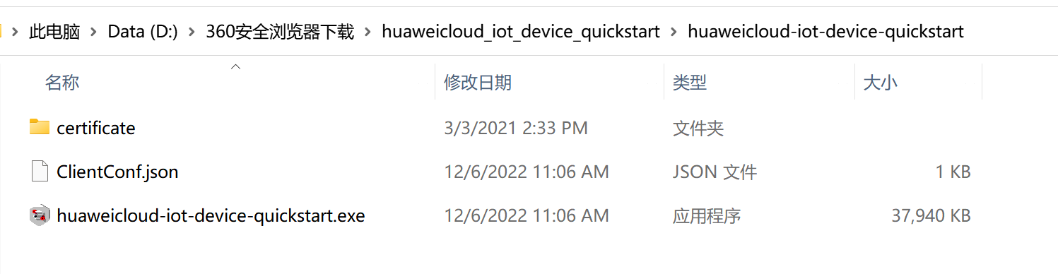 点开【huaweicloud-iot-device-quickstart.exe】文件。别着急,等着就行。但是别等太久啊。我们看到运行了就回来页面。