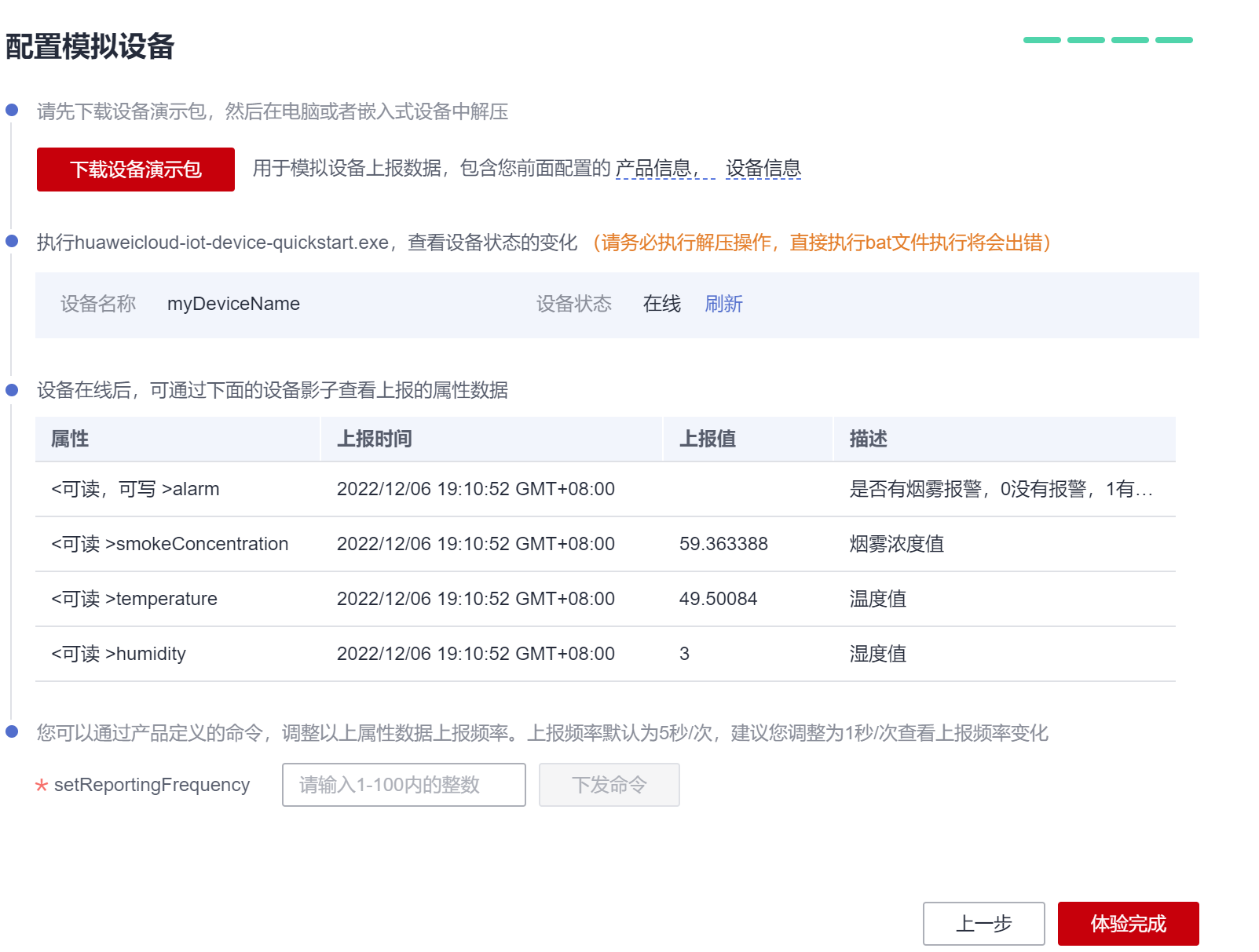 第三步:完成初级体验任务:0代码4步体验物联网设备上云