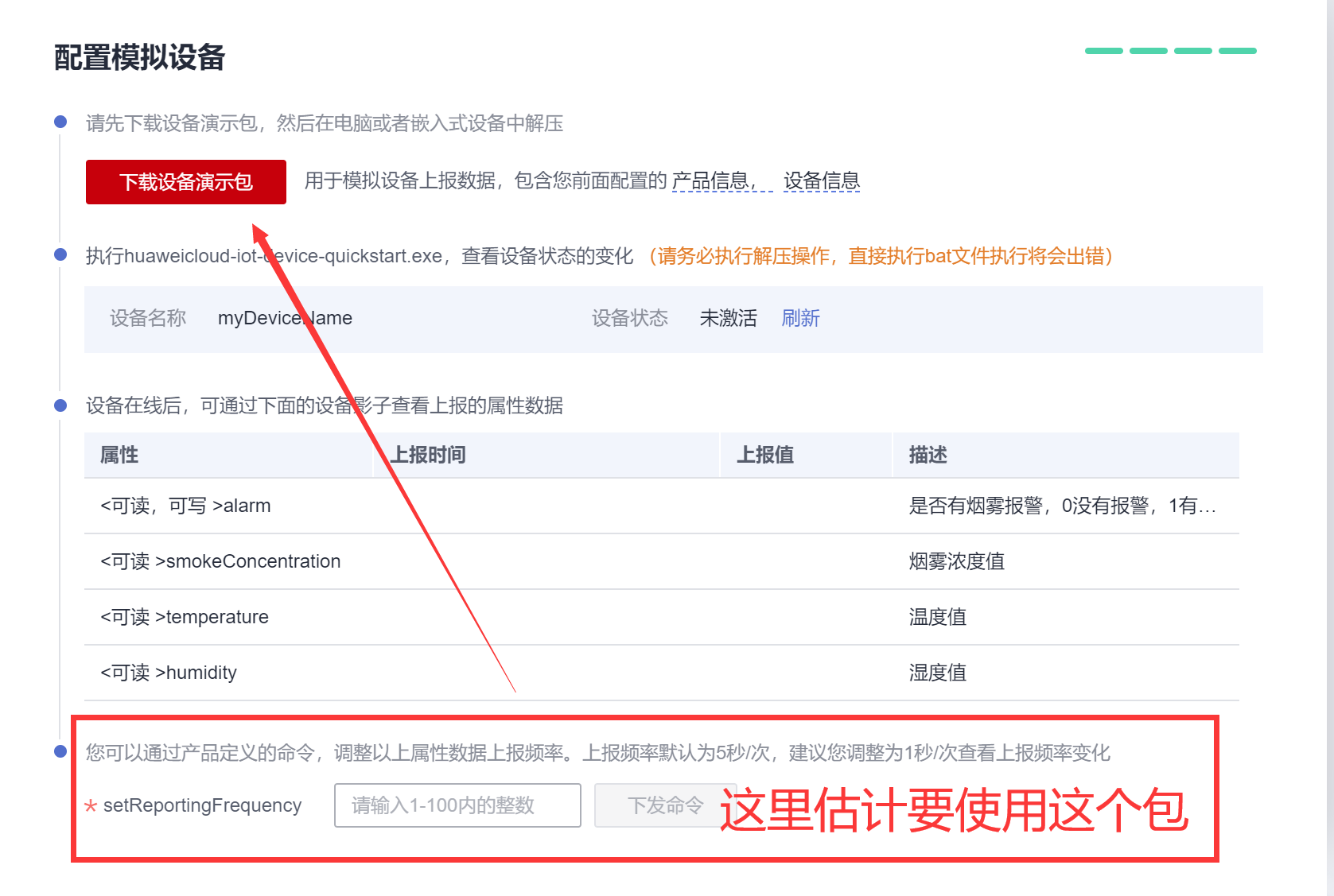 这里有一个【下载设备演示包】,可能下面的数据需要这个演示包来操作吧。
