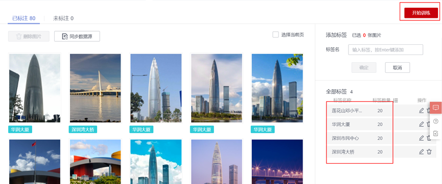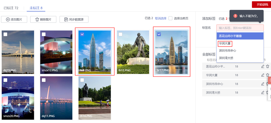 勾选华润大厦的图片,然后在右侧的标签名中输入“华润大厦”