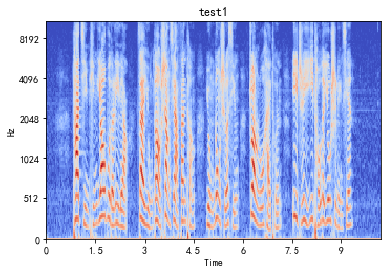 test1 音频时间序列 y1: [-0.00695801 -0.01132202 -0.0128479 ... -0.01156616 -0.01165771