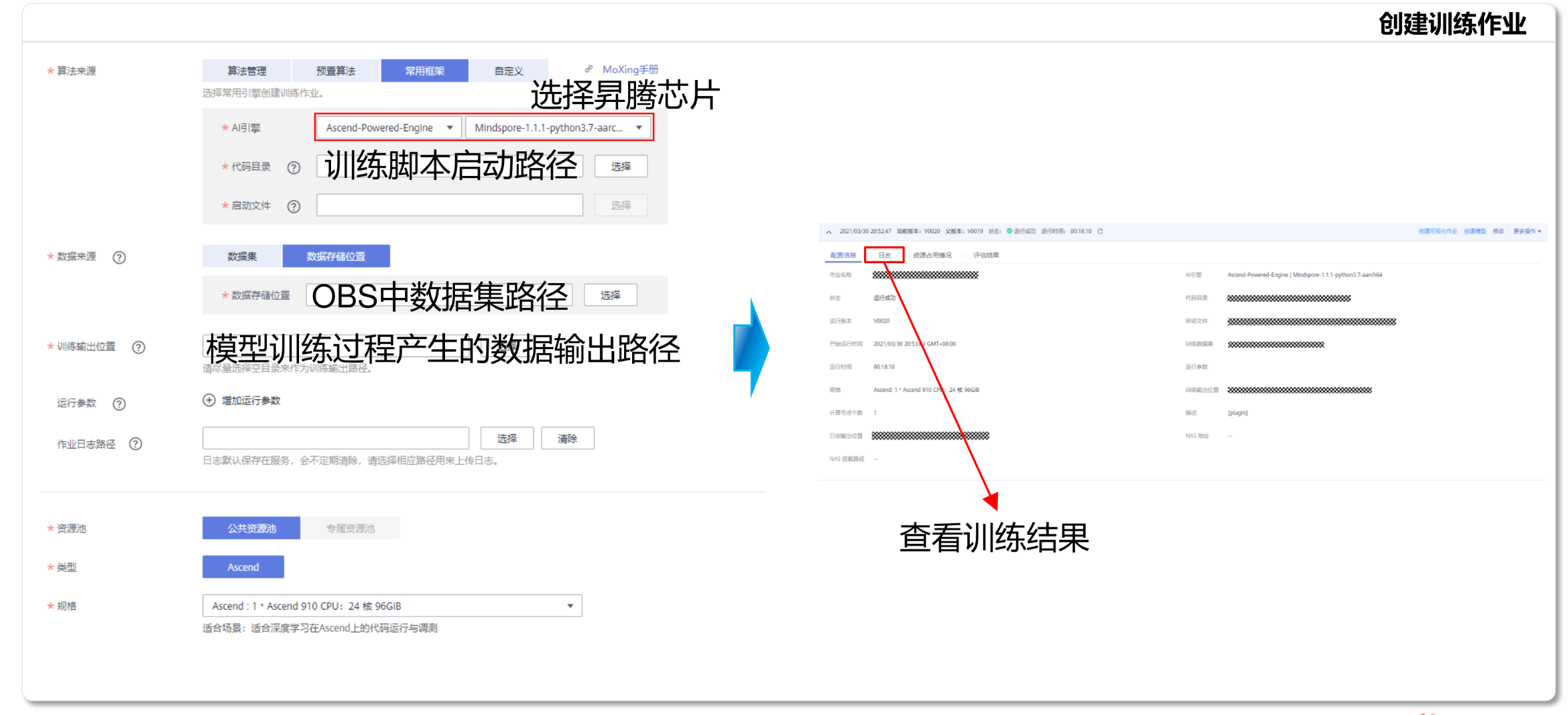 2.支持一键启动ModelArts云上MindSpore训练作业与MindInsight可视化作业;
