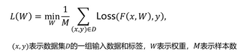 (x.y)表示数据集D的一组输入数据和标签,W表示权重,M表示样本数