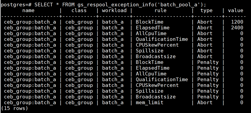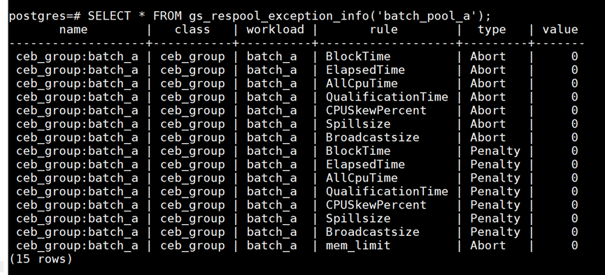 SELECT * FROM gs_respool_exception_info('batch_pool_a');