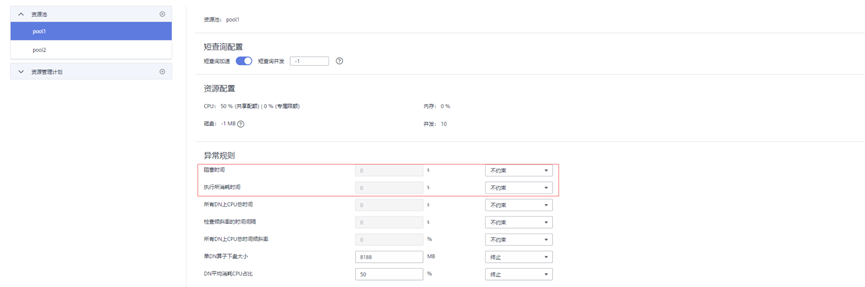 配置异常规则的目的:让已经关联资源池的用户作业,长时间排队或者长时间执行的作业中断调,让异常的作业终止掉,释放资源,让后边排队的作业执行