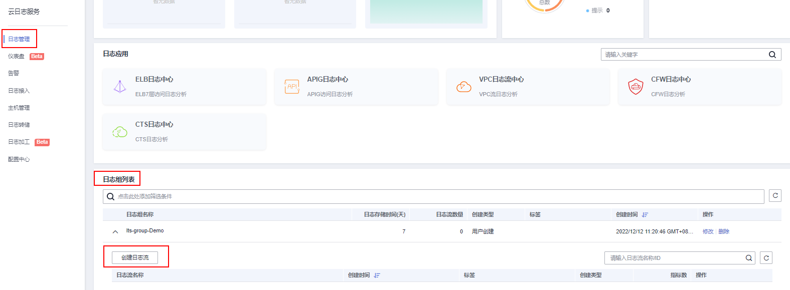 1、云日志服务中创建日志组和日志流