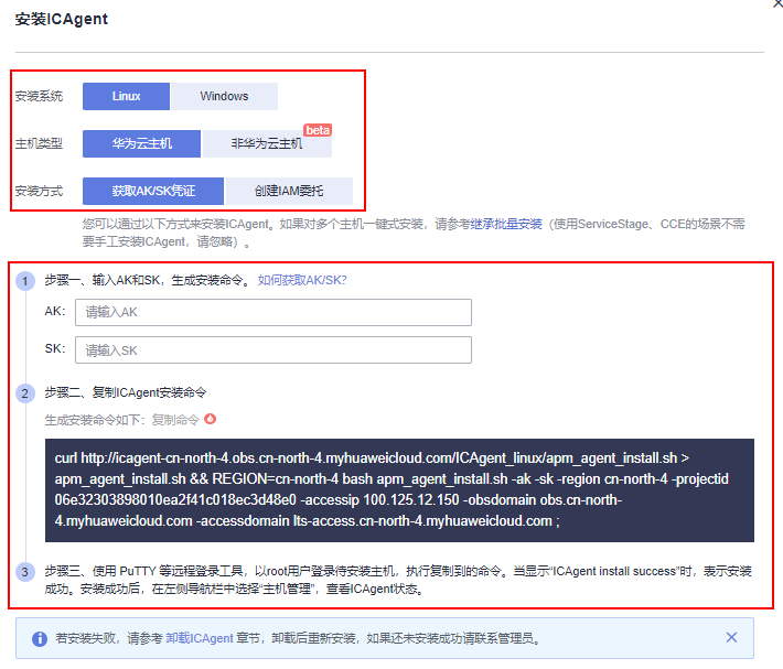 • 安装方式:获取AK/SK凭证