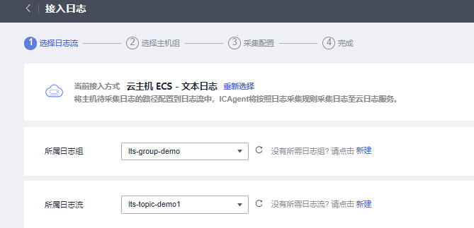 进入到接入日志的配置引导页面,如下图所示,根据引导完成配置即可。