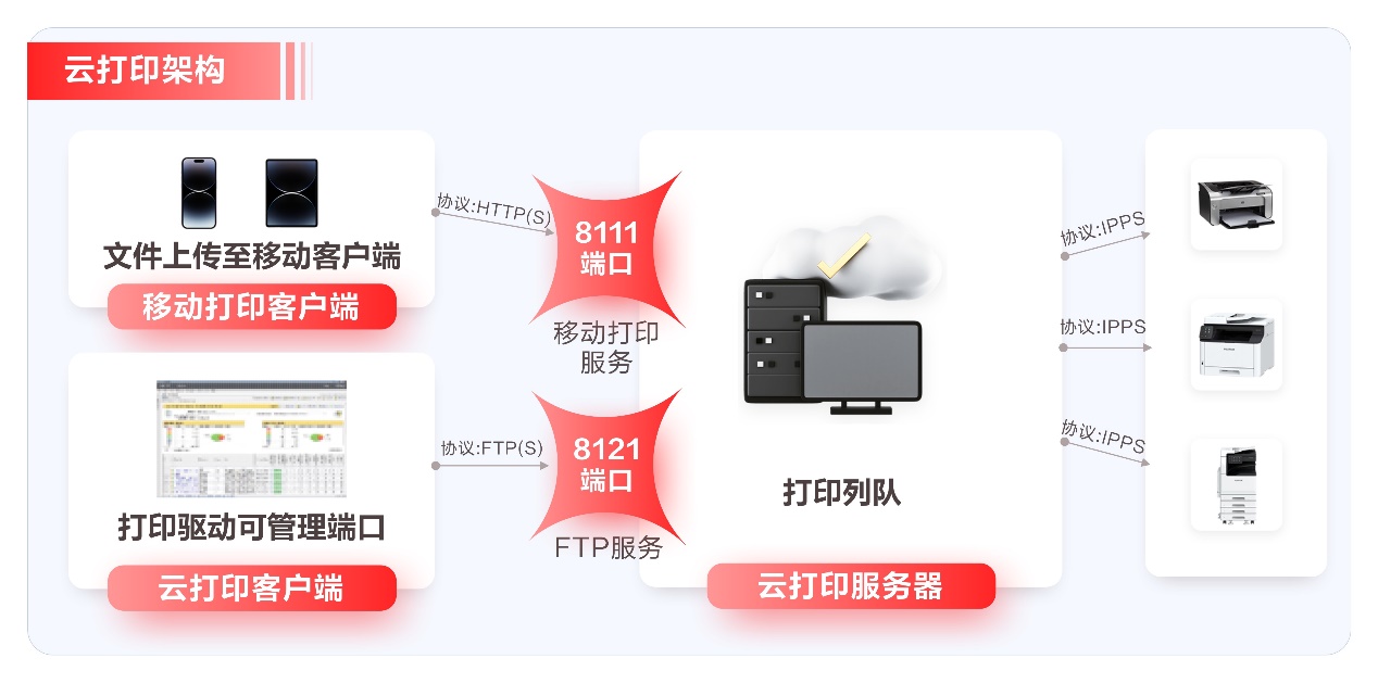 司印云打印不仅提供了一个所有打印机均支持的超级“通用”打印语言,而通过虚拟驱动单一化了客户端,将多样性、兼容性等问题放在了服务器端。为了最大化兼容各种打印机,服务器需要运行在Windows操作系统上。针对统一品牌的打印机,也可以提供在Linux部署的服务器版本,满足政企办公和信息合规的各类需求。