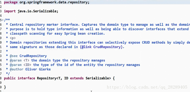 ①、Repository :仅仅是一个标识,表名任何继承它的均为仓库接口类