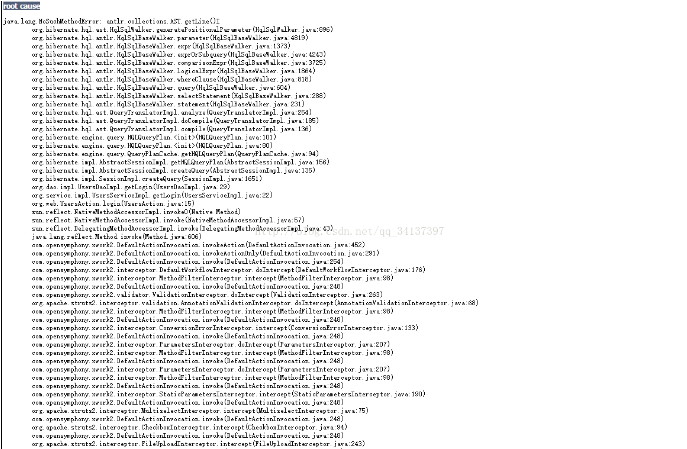 之前还不知道这是个啥错误,经过上网查找之后才知道这是jar包冲突的问题!!由于项目都是用hibernate和struts2反向生成的,jar包是自动导入进来的,以为都没问题,运行的时候才出错,所以这很让人难受。