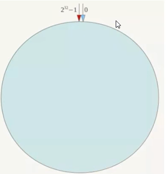 一致性哈希环也是使用的取模的方方,是对2^32取模。一致性hash算法将这个哈希值空间组织成一个虚拟的圆环,整个哈希环是按照顺时针方法组织的。如下图: