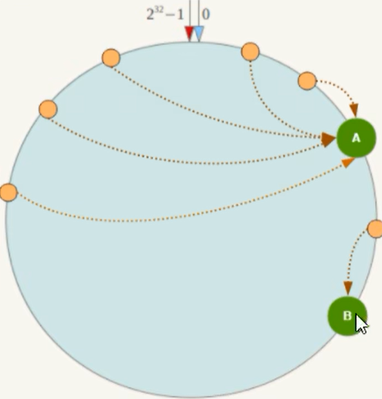 一致性哈希算法必然有个hash函数并安装算法产生hash值,这个算法的所有可能哈希值会构成一个全量集,这个集合可以成为hash空间,范围是[0,2^32-1],这是一个线性空间,但是在算法中,通过适当的逻辑控制将其首尾相连(0=2^32),这样在逻辑上,就形成了一个环形的空间。