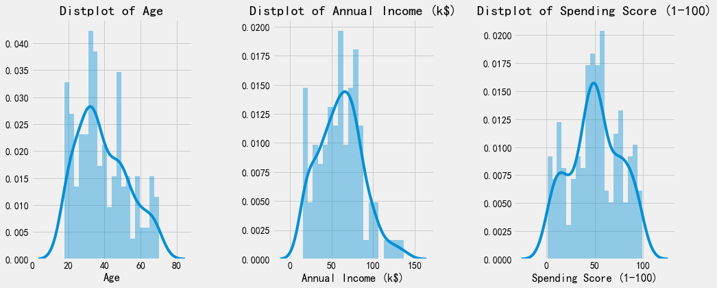 for cols in ['Age' , 'Annual Income (k$)' , 'Spending Score (1-100)']: