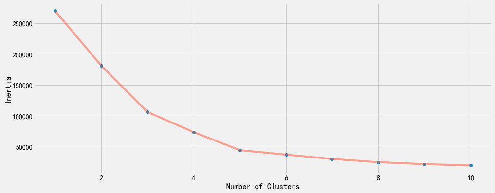 可以看到,当聚类中心大于等于5之后,inertias的变化幅度显著缩小了。
