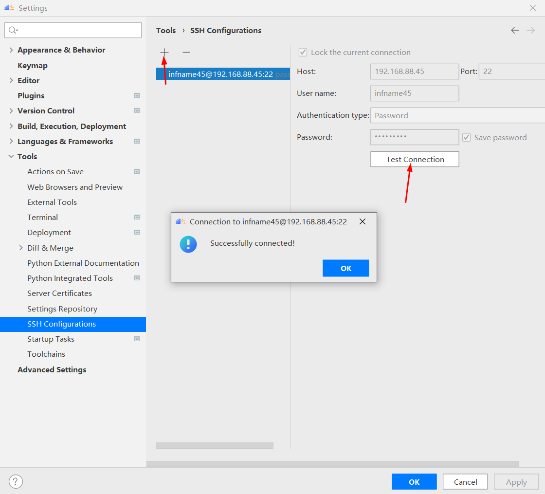 点击 SSH Configurations对话框,然后点击其中的加号