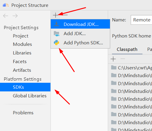 点击“SDKs”,点击加号,点击“Add Python SDC...”,