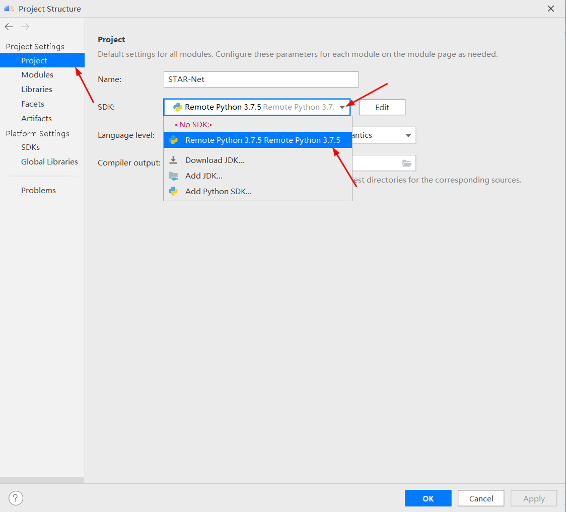 点击“Project”,选择创建的 SDK,点击“OK”。
