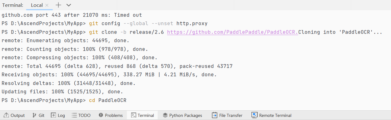 a. 在本地终端命令中通过 git 获取推理工具代码,命令如下: