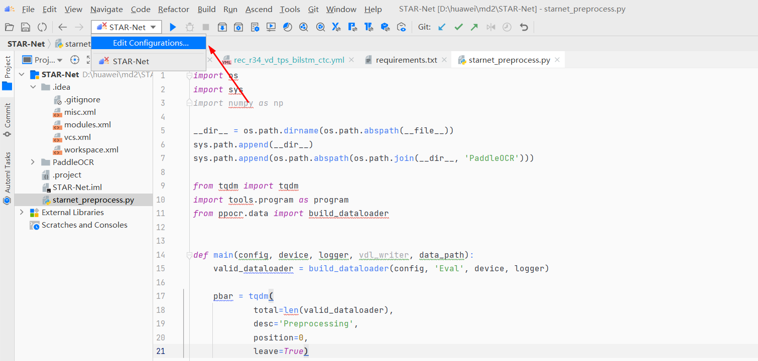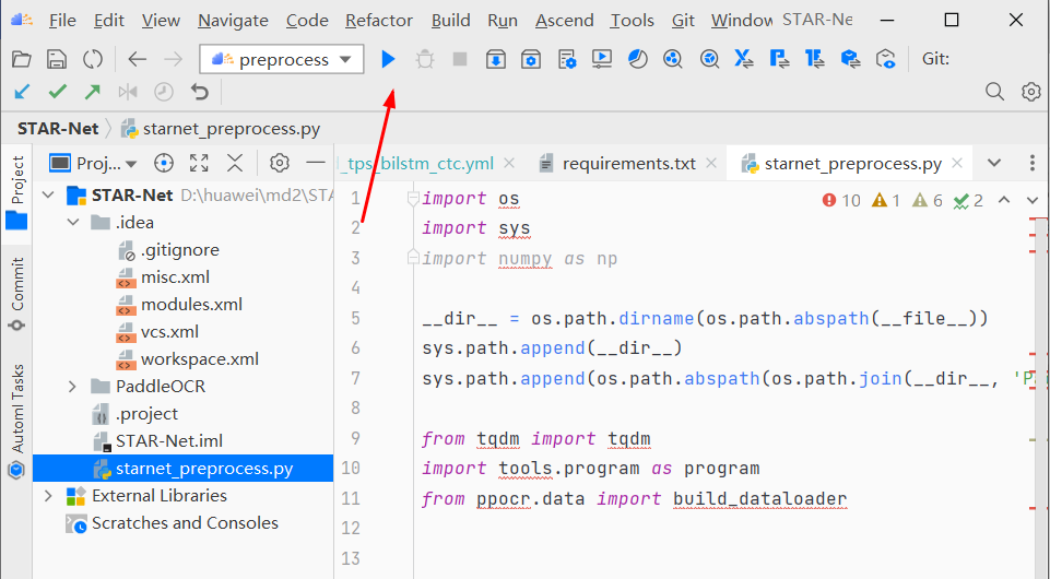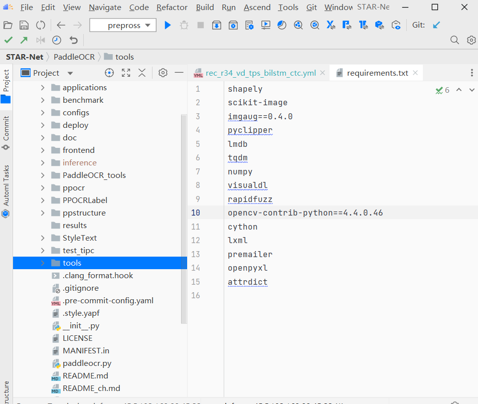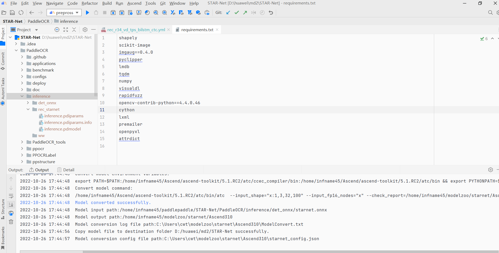 本文开发模型为基于 PaddlePaddle 的模型库 PaddleOCR 中 star_net 模 型