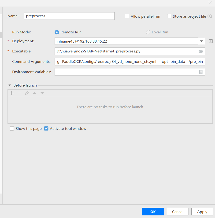 d.如下图所示,添加命令参数,点击“OK”。