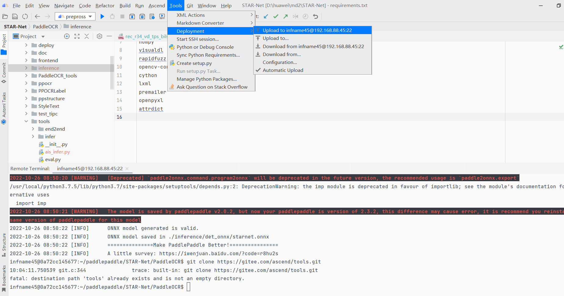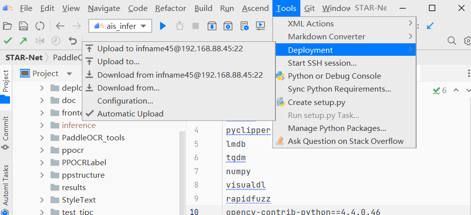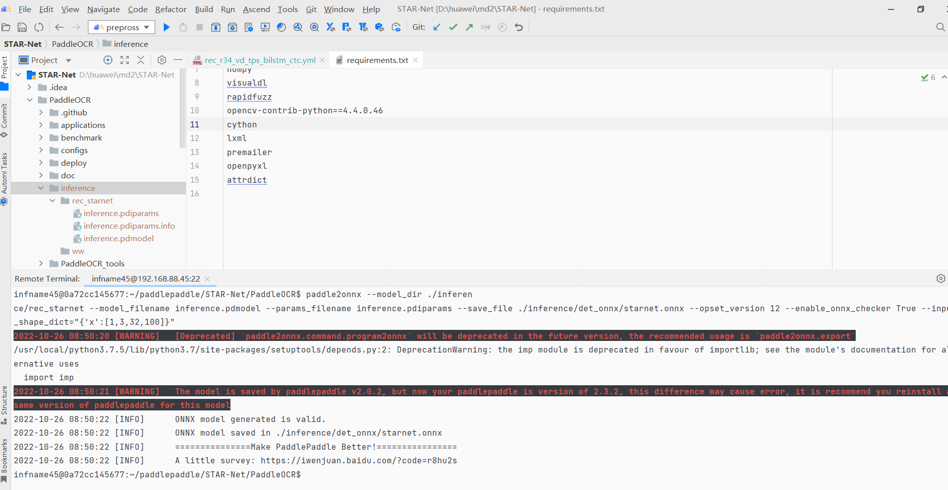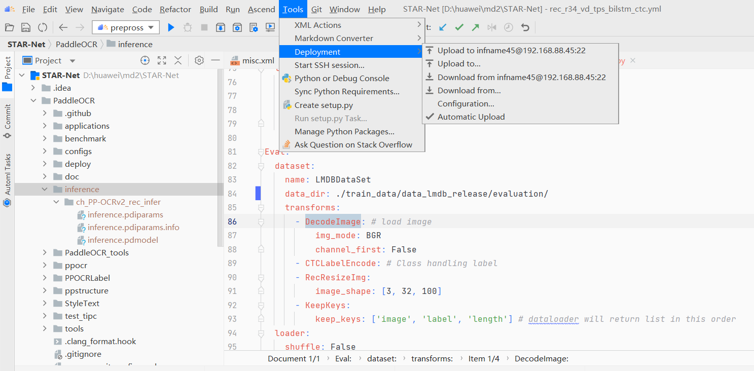 修改完成后将 PaddleOCR 同步到远程服务器,如下图。