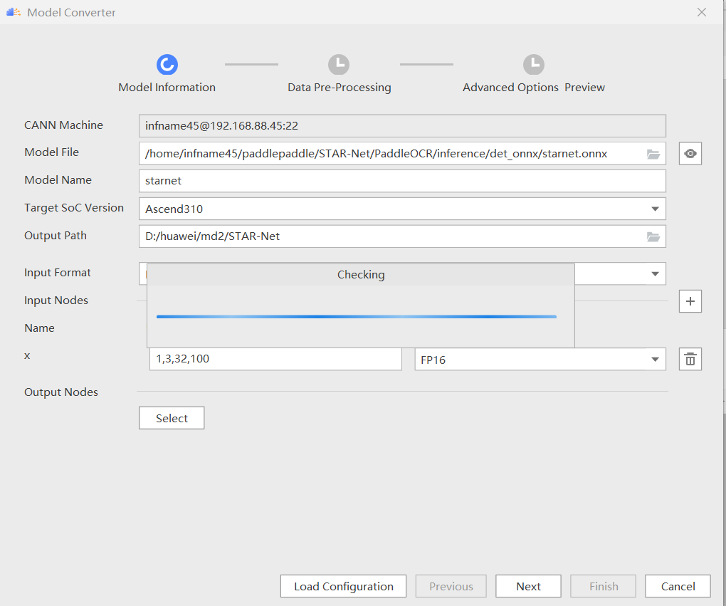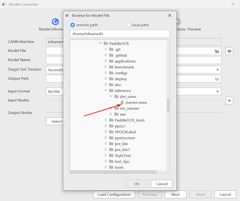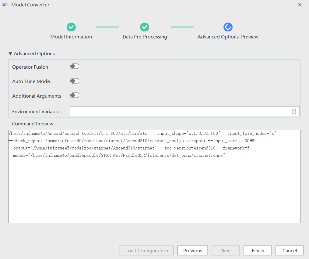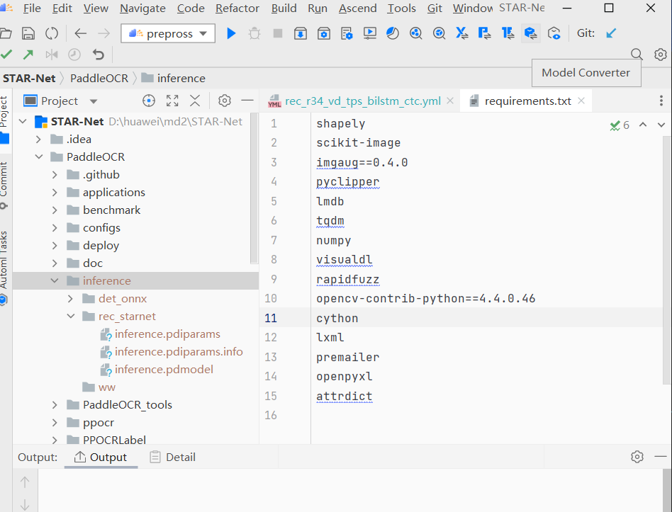 通过以上步骤,使用 MindStudio 的模型转换功能成功将 onnx 模型转成 om 模型:starnet.om。