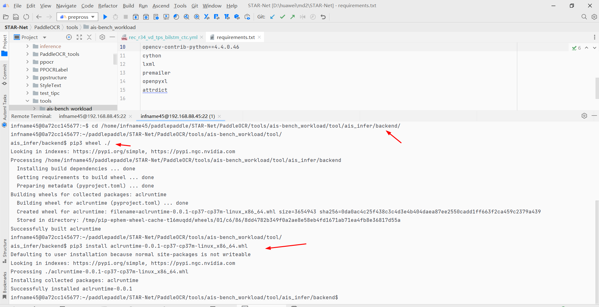 c.编译并安装 aclruntime 包,如下图所示,命令如下,