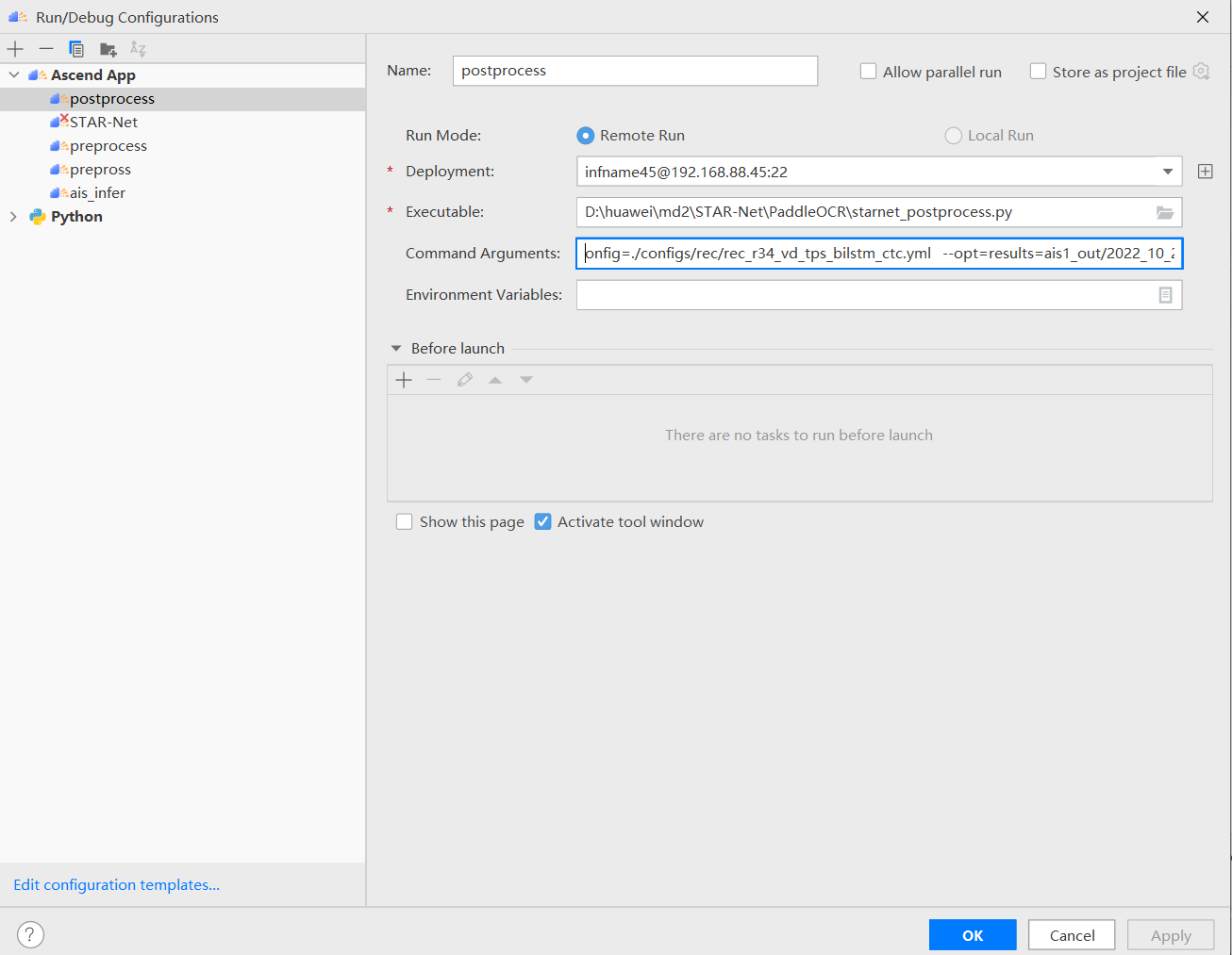 b. 添加 ais_infer 的可执行命令,点击“OK”,如下图所示。
